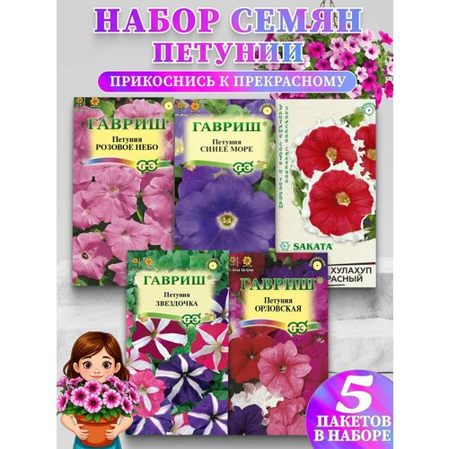 Семена петунии гавриш "Краски Лета", "Синее Море", "Розовое Небо", "Звёздочка", "Хула-Хуп Красный F1", 5 пачек
