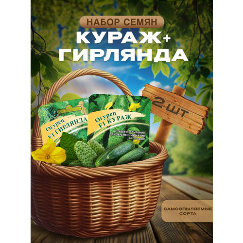 Семена огурцов самоопыляемые Кураж + огурцы для открытого грунта и теплиц Гирлянда.