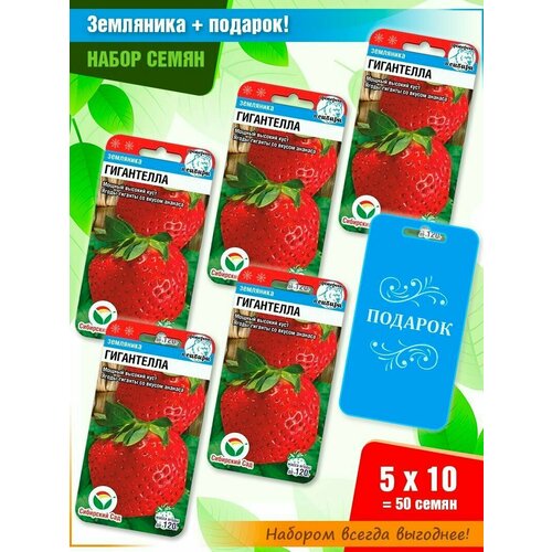 Семена земляники Гигантелла фасовкой 10шт от Сибирского Сада (5 пачек + подарок)