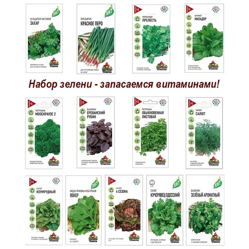 Семена, набор семян Зелень, базилик, укроп, салат, петрушка и др