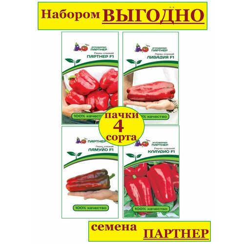 Набор Перец сладкий ПАРТНЕР+ Ламуйо+ Клаудио+ Ливадия семена Партнер (4 упаковка*5 шт семян)