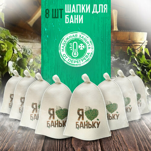 Шапка для бани "Я люблю Баньку", банная шапка ”Бацькина баня" 8 шт