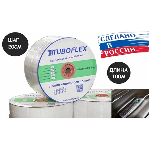 Лента капельного полива TUBOFLEX многолетняя 100 метров с шагом между эмиттерами 20 см (1,6 л/ч)
