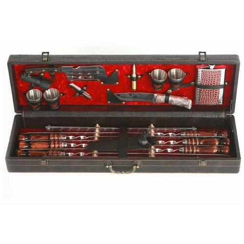 Подарки Набор для шашлыка "Мясник" в кожаном кейсе (9 предметов)