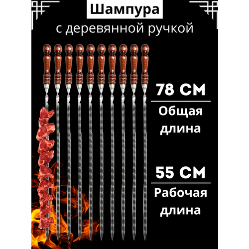 Набор шампуров с деревянной ручкой для мангала. 10шт