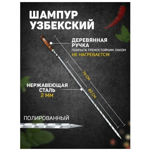 Шампур узбекский Sima-land 79 см, деревянная ручка, рабочая часть 60 см, сталь 2 мм
