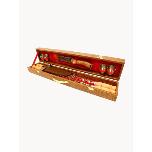Шашлычный набор в подарочном кейсе №10 красный велюр