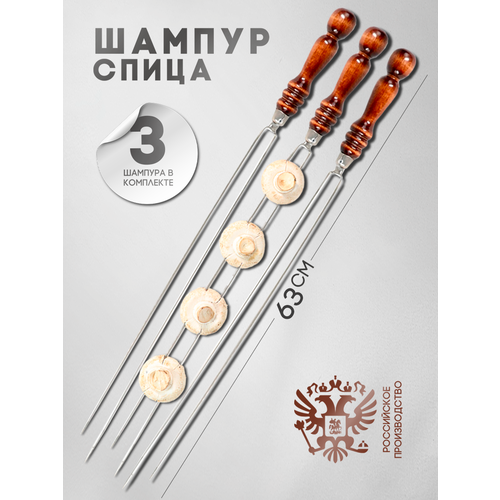Двойной шампур 3 шт, , нержавеющая сталь, огнеупорные кольца, дерево, 65см