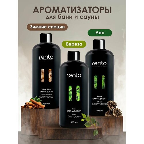 Набор ароматизаторов для бани/сауны Rento (зимние специи, береза, ЛЕС) 400мл х3