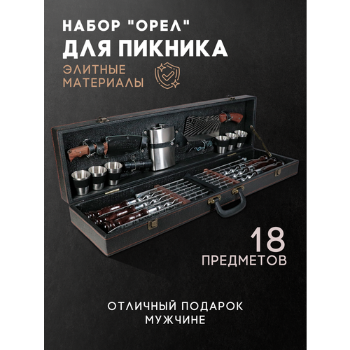 Подарочный шашлычный набор с шампурами и посудой для пикника в кейсе