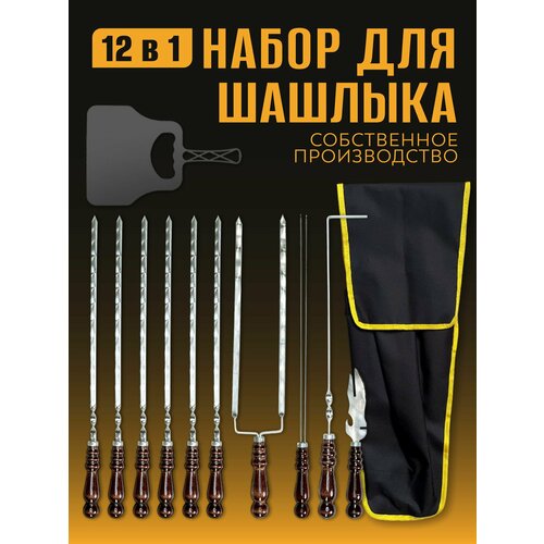 Набор шампуров подарочный с деревянными ручками 12в1 в чехле