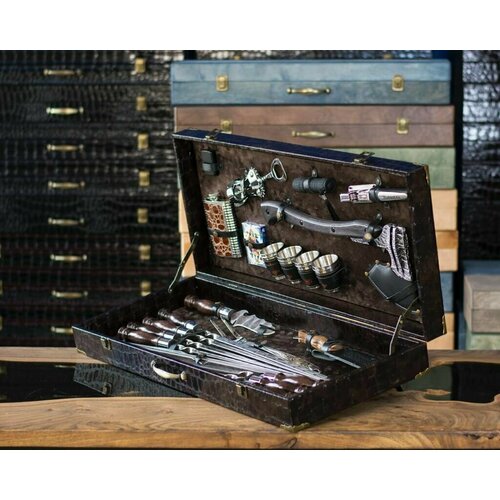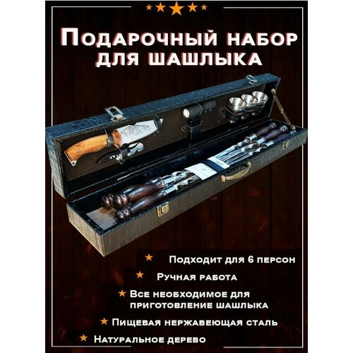 Шашлычный набор в подарочном кейсе №24 - это не просто набор для приготовления шашлыков, это стильный и функциональный аксессуар, к...