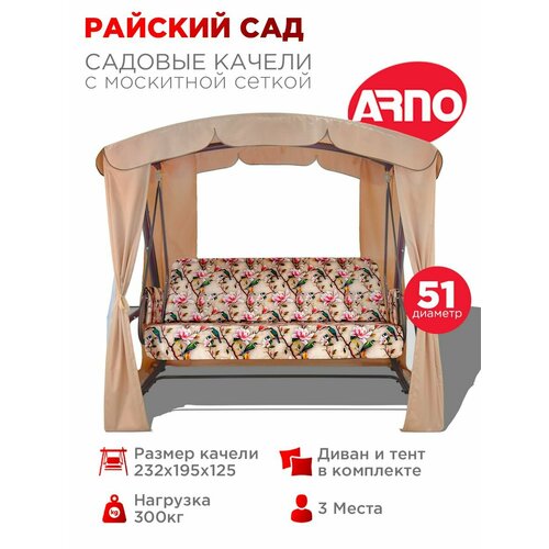 Качели садовые Райский сад, 3 местные, 51 труба, нагрузка 300кг, для дома, дачи, улицы