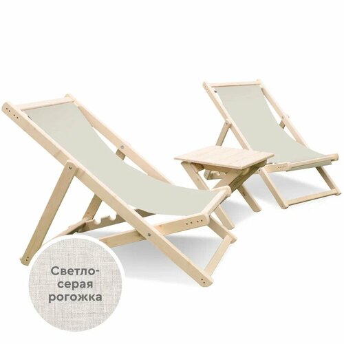 Комплект шезлонгов с светло-серой тканью (2 шезлонга + складной столик)