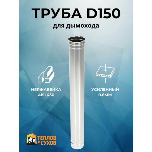 Труба для дымохода 150, нержавейка 1м, 0.8мм Теплов и Сухов