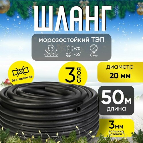 Шланг садовый поливочный морозостойкий ТЭП, резиновый армированный, 20 мм, 50 м