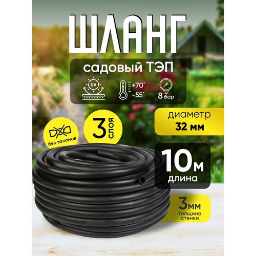 Шланг садовый поливочный морозостойкий ТЭП, резиновый армированный, (32 мм), 10 м