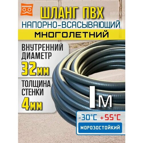 Ассенизаторский шланг для дренажного насоса 32 мм (1 м). Морозостойкий шланг для откачки.
