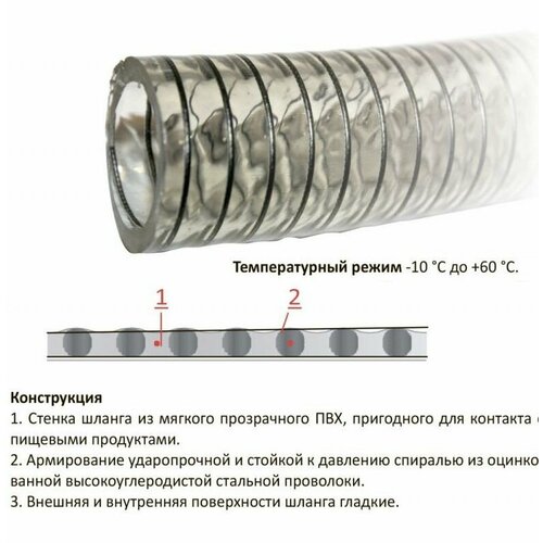 Напорно-всасывающий шланг 38 мм, 10м PVC5000-38/10, армированный стальной спиралью
