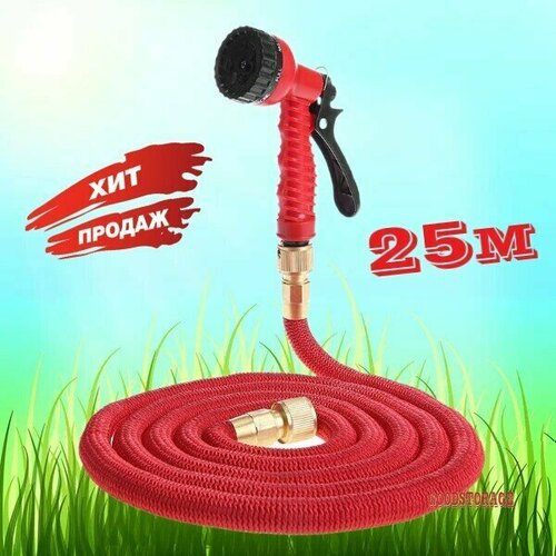 Шланг растягивающийся для полива до 25 метров, с латунными разъемами и распылителем