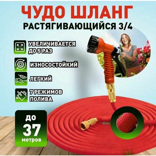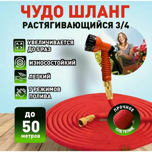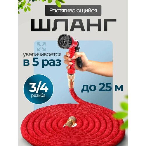 Шланг поливочный 3/4 растягивающийся садовый, 25 метров, для полива с насадкой