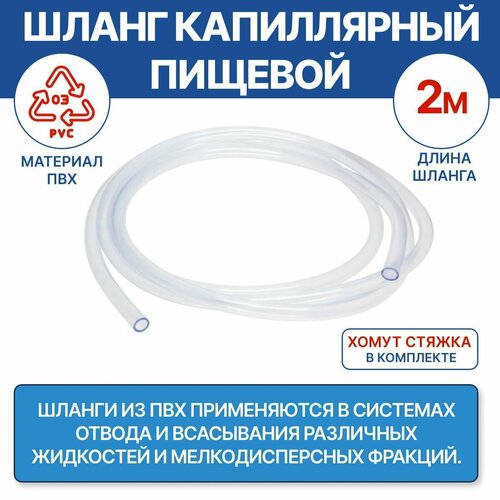 Шланг пищевой прозрачный 4х6 мм, 3 м, трубка пищевая гибкая