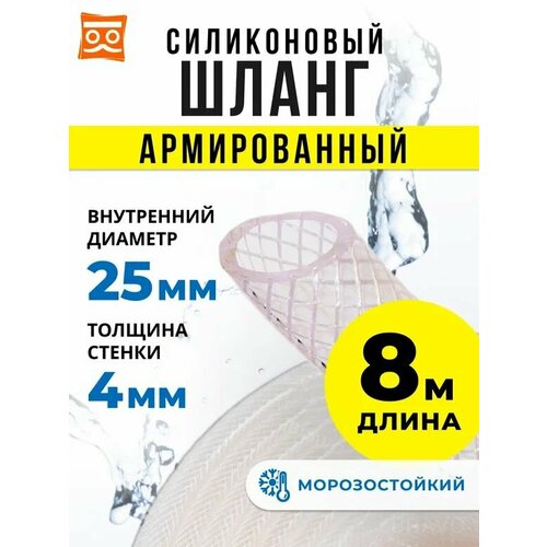 Силиконовый шланг армированный 25 мм, дюймовый, стенка 4 мм (8 метров)