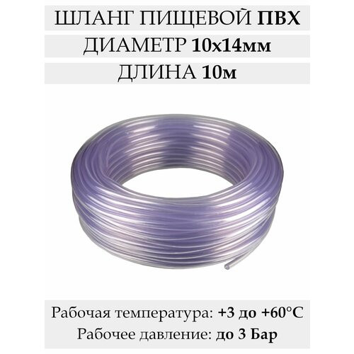 Шланг пищевой прозрачный 10х14 мм, 10 м, трубка пищевая гибкая