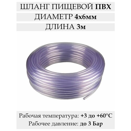 Шланг пищевой прозрачный 4х6 мм, 3 м, трубка пищевая гибкая