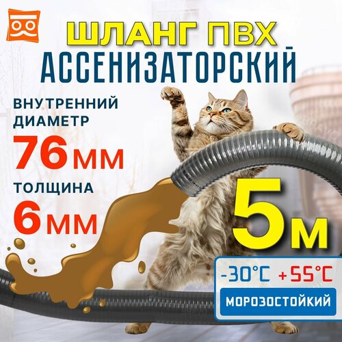 Ассенизаторский шланг 76 мм, ПВХ, армированный, морозостойкий, 5 метров