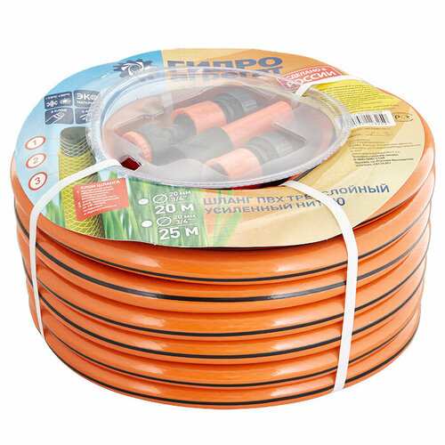 Шланг Поливочный 3/4 Дюйма, 20 М, Армированный, 3-Х Слойный Гидроагрегат Оранжевый С Полосой (Набор Коннекторов В Подарок)