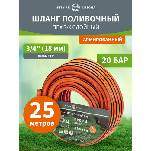 Наименование: Шланг поливочный ПВХ 3-х слойный армированный 3/4 25м Стандарт четыре сезона. Производитель: четыре сезона. Артикул производителя: 620226