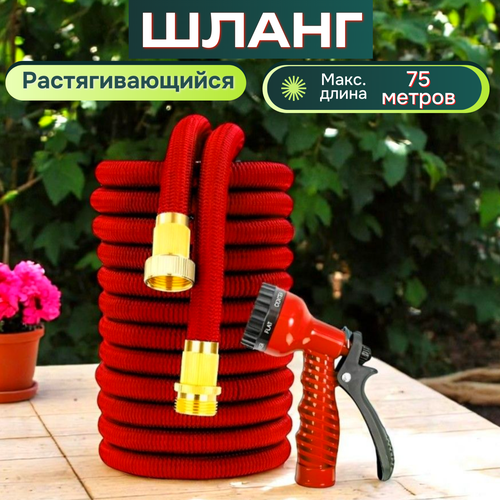 Шланг садовый растягивающийся 75 метров для полива с распылителем/ 75 метров с металлическим соединением
