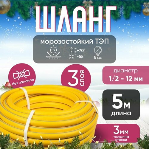 Шланг садовый поливочный морозостойкий ТЭП, резиновый армированный, 1/2 (12 мм), 5 м
