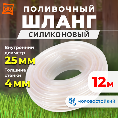 Шланг для полива прозрачный силиконовый 12 метров, диаметр 1" дюйм (25 мм) толщина 4 мм