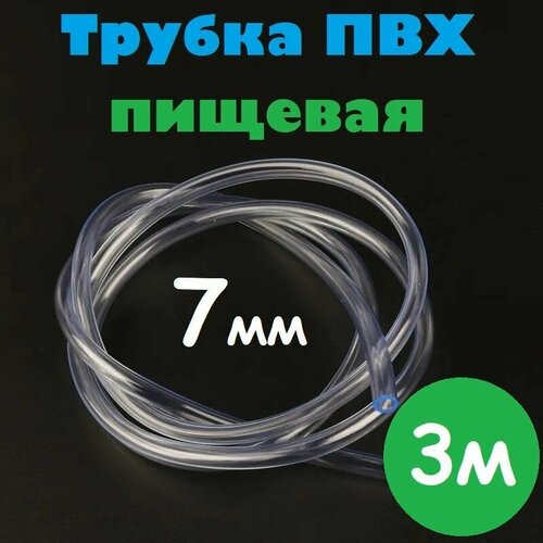 Трубка ПВХ 7 мм / Шланг ПВХ 7х9 мм пищевой гибкий для самогонных аппаратов, для аквариума, кофемашины, колонны, 3м
