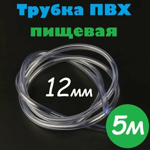 Трубка ПВХ 12 мм / Шланг ПВХ 12х15 мм пищевой гибкий для самогонных аппаратов, для аквариума, кофемашины, колонны, 5м
