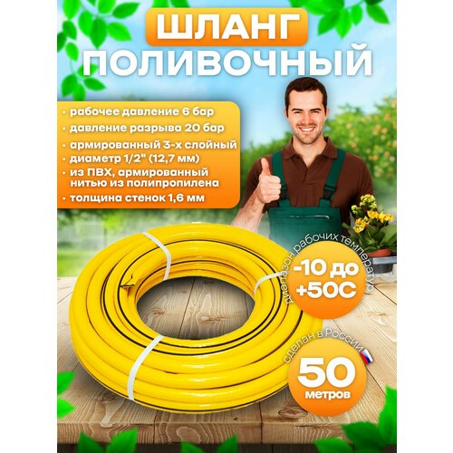 Шланг поливочный садовый армированный трехслойный 50 м 1/2 Садовник