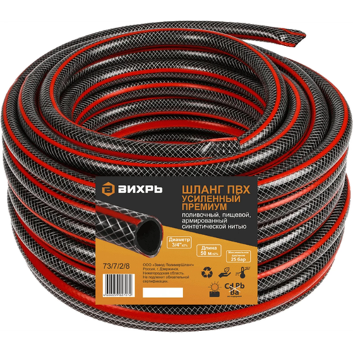 Шланг садовый Вихрь ПВХ усиленный 3/4, 50м премиум (черн-красн) трехслойный