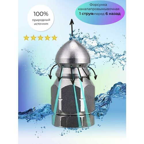 Аксессуар для моек форсунка на шланг прочистки труб, 1 струя вперед 6 назад, вход 1/4