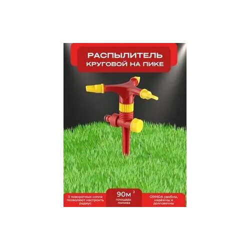Распылитель круговой PROLine, GRINDA RR-P, 75 м полив, 3 сопла, на пике, ударопрочный пластик
