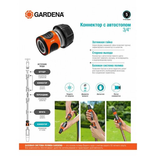 Коннектор с автостопом Premium 3/4" (18254-20) GARDENA 1