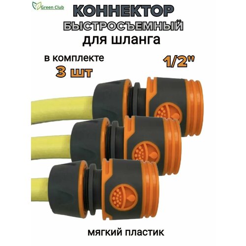 Коннектор для шланга 1/2" быстросъемный, мягкий пластик, комплект 3 шт