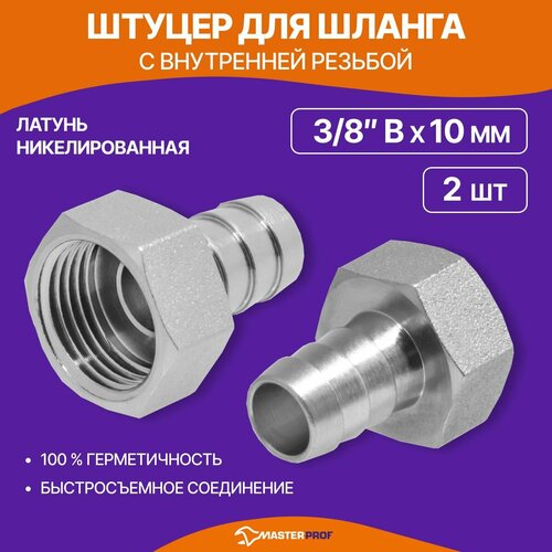 Штуцер для шланга 3/8 в на 10 мм, латунь, 2 шт.
