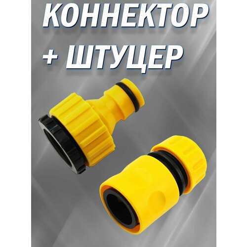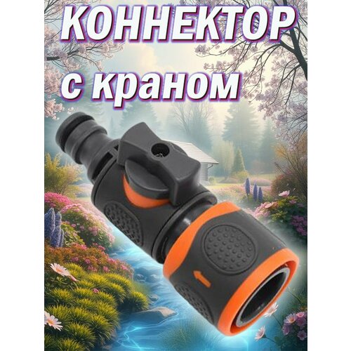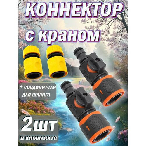 Коннектор садовый с краном и соединителем для шланга / 2шт