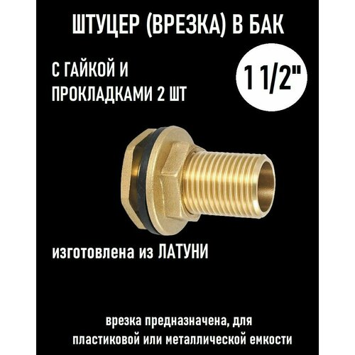 Штуцер (врезка) в бак (емкость, резервуар) с прокладкой 1 1/2" (40 мм), латунь