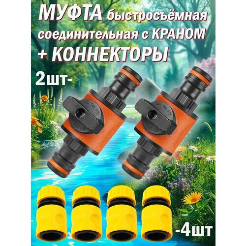 Муфта быстросъёмная соединительная с краном ABS пластик с коннектором/ 2 комплекта