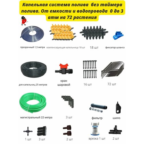Капельный полив 72 растения без таймера для огорода и растений , автополив для теплиц