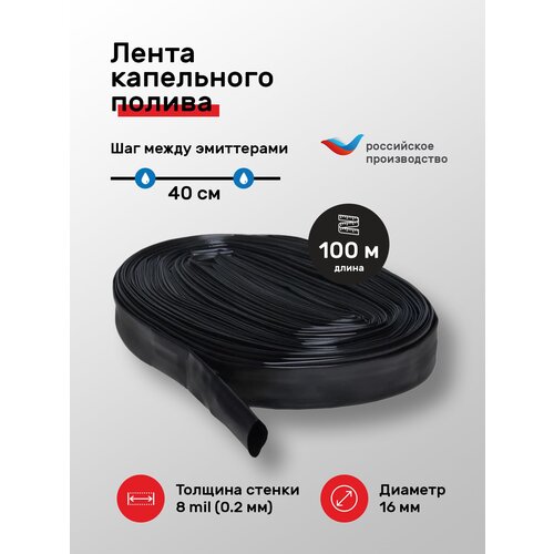 Капельный полив / Садовый полив / Лента для капельного полива эмиттерная (8 mils) 100 метров с шагом между эмиттерами 40 см Tuboflex