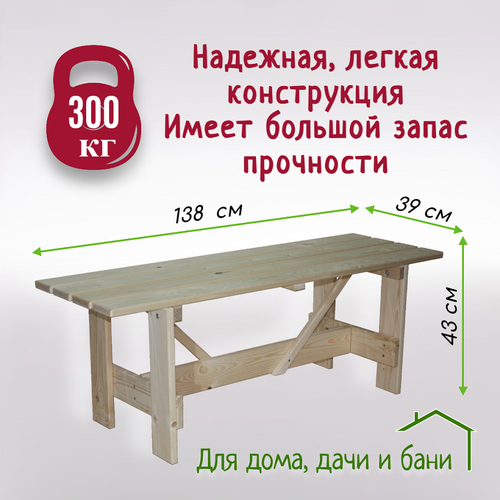 Лавка садовая, массив дерева, скамейка садовая, для бани, 138х39х43 см, Банный Мастер
